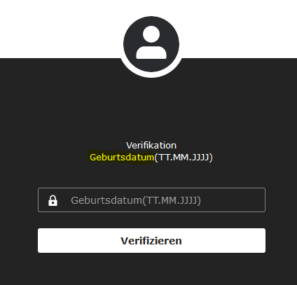 3. Aus sicherheitsgründen erfolgt eine Abfrage Ihres Geburtsdatum. Geben Sie Ihr Geburtsdatum im folgenden Format ein und klicken anschließend auf Verifizieren: TT.MM.JJJJ (bspw. 01.01.1950).